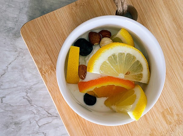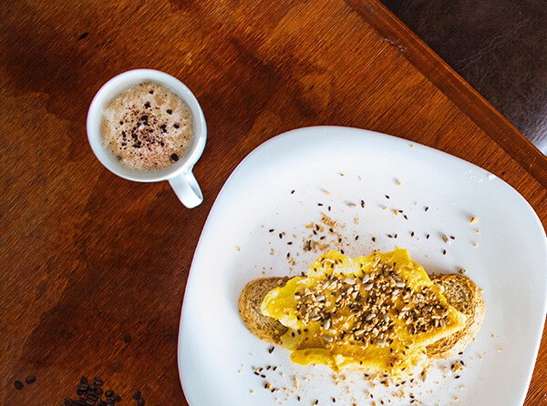 Toasted sourdough with avocado, lime and sesame.