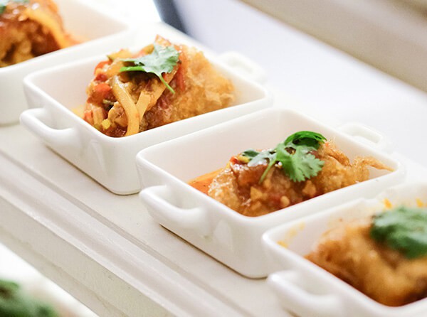 Crispy sweet potato fries with vegan aioli.